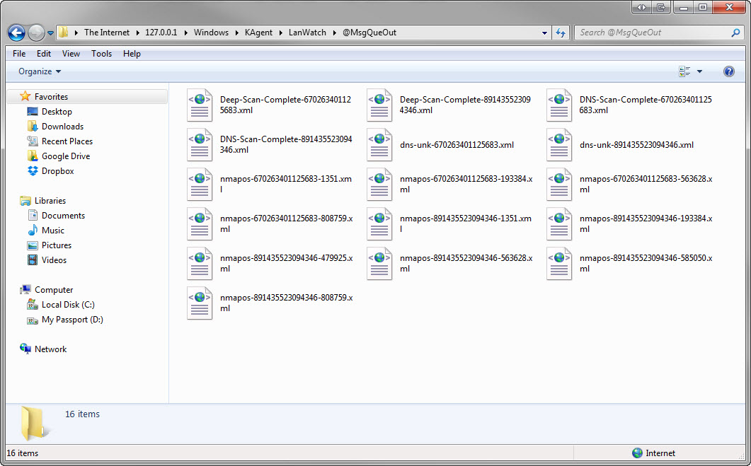 Run a scan on a Discovery Network, Deep Scan will get stuck with no "percentage complete" status and no error code. When you check the @MsgQueOut folder in the working directory you can see the XML files generated.