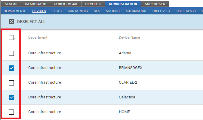 - Search for the devices using filters and select via the checkbox to the left hand side of the device.