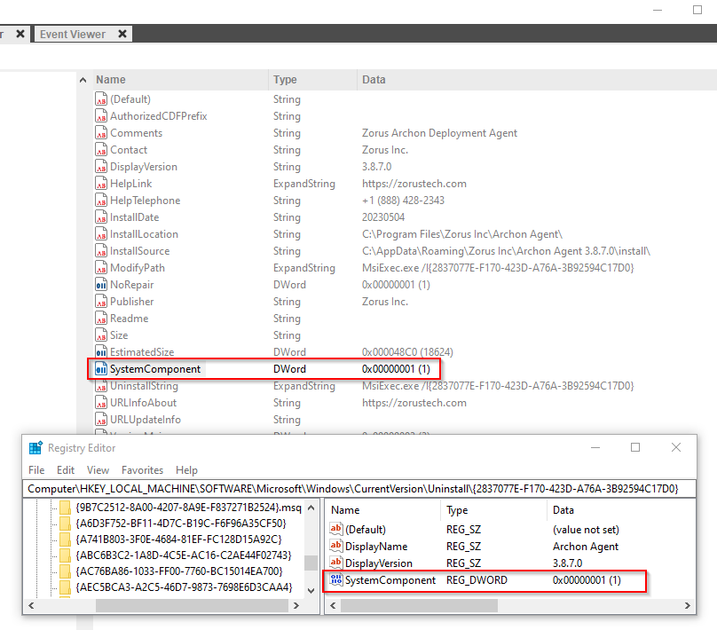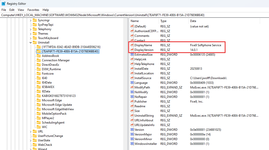 - HKLM\SOFTWARE\WOW6432Node\Microsoft\Windows\CurrentVersion\Uninstall\