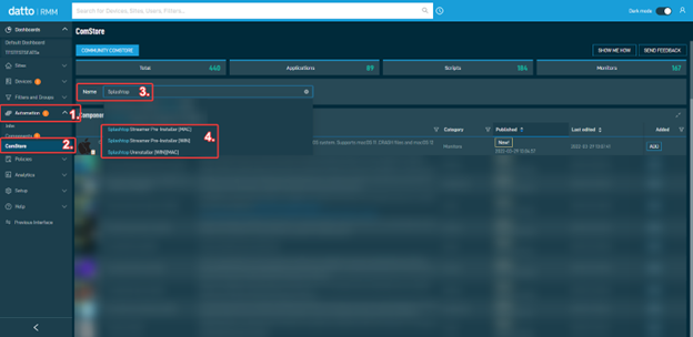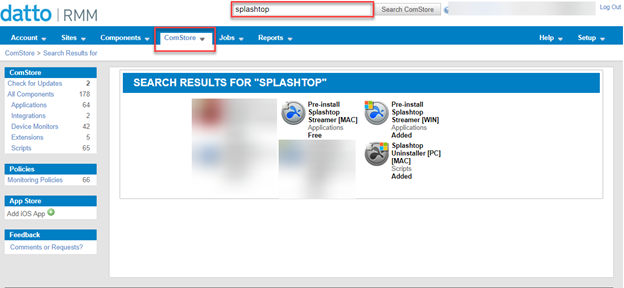 If using the New UI, Click Automation → ComStore, then search for Splashtop