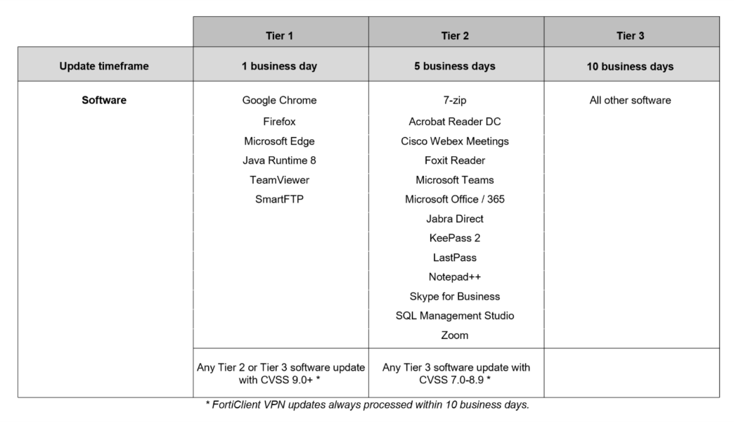 If the software does not appear in the above list, it means that it will be part of the Tier 3 list