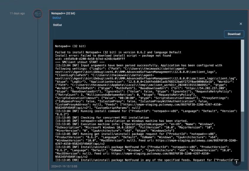 Located in: C:\ProgramData\Centrastage\AEMAgent\RMM.AdvancedSoftwareManagement\12.6.XXX\