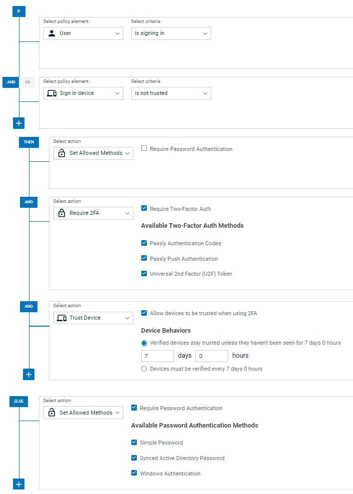 This policy will trust the device where the Windows Logon Agent is deployed once the user has successfully signed in using 2FA. The trust will remain in place based on the Time criteria set in the ‘Device Behaviors’. This means that the next time the users log in to that device, they will not be prompted for 2FA if the device is still trusted, otherwise 2FA is required.
